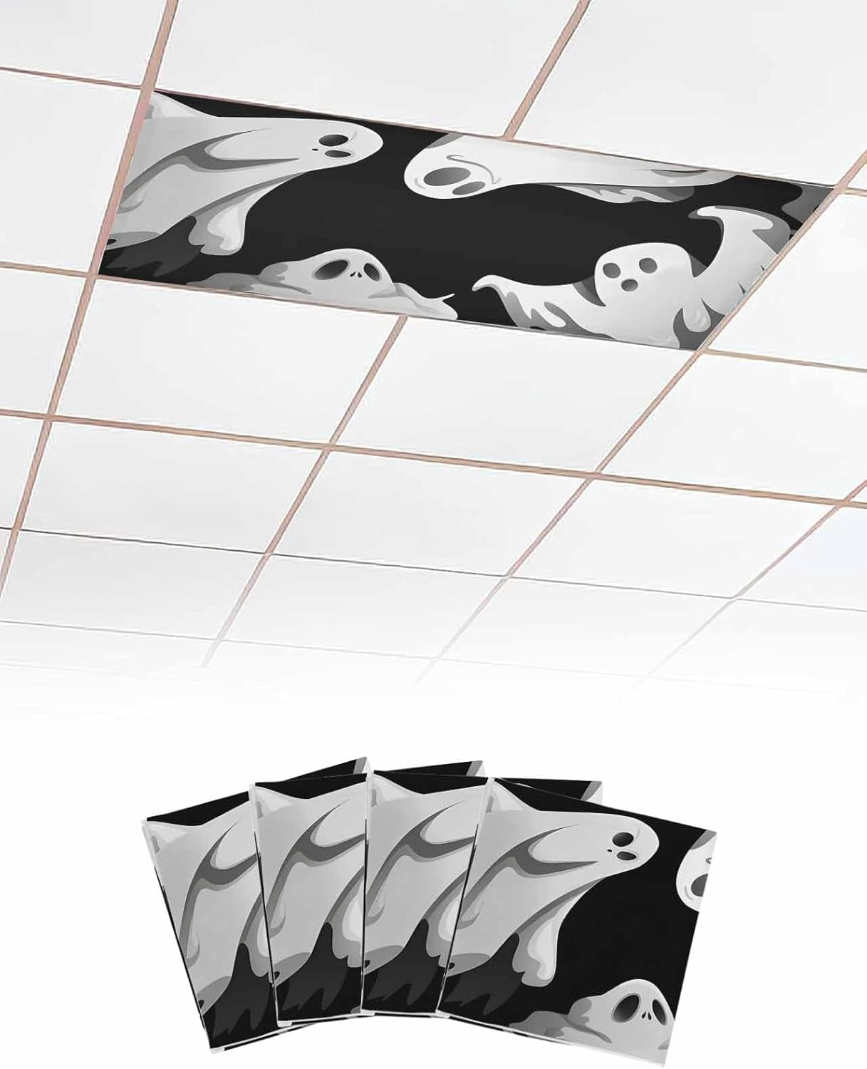 Halloween Fluorescent Light Covers to Enlighten Your Living Space & Make Your Space InspiringProduct DescriptionMaterial: oxford fabric with magnetsSize: 4 x 2 feet (122x61cm)Package:Pack of 1/2/3/43 Easy Steps to Install1. Select and unfold a magnet light cover2. Using a step-ladder climb to the desired light3. Attach the sewn-in magnets on the outside of the ceiling grid, covering the light.Exquisite WorkmanshipThe fluorescent lamp shade is made of high-quality Oxford cloth, which is reusable and very environmentally friendly. The pattern printing is clear and the visual effect is good.Easy CleanWaterproof fabrics, wipe them by wet rag. Or just machine wash in cold water, avoid bleaching. This ensures that you can enjoy using our light cover without having to worry about a complicated cleaning process.Create a Peace EnvironmentThe fluorescent ceiling light cover for ceiling lights can effectively weaken the light, alleviate the temporary dizziness caused by lighting, which can reduce the eyes' discomfort, creating a peace and ease environment.Versatile Ceiling LightsFrom classrooms to medical facilities, our ceiling light replacement cover shines in various settings. Whether you're in a school, hospital, or dentist's office, these fluorescent light covers promote a better working environment. The exquisite design adds more beauty to your ceiling. Vibrant HD PatternOur magnetic light filters come in a variety of vibrant colors and patterns for each season and occasion. Give your space a real personality, the perfect gift for daily and various holidays.