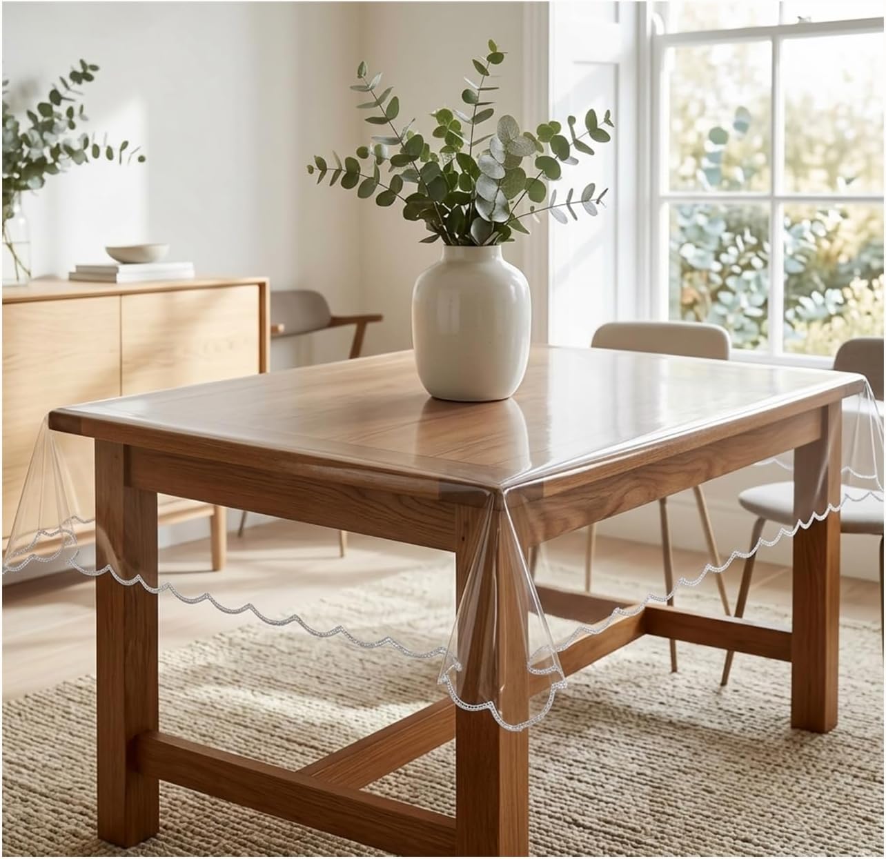 Crystal Clear Elegance: Experience the beauty of your table while keeping it protected. The transparent vinyl material allows the natural beauty of your table to shine through, adding an elegant touch to any dining occasion. Transform your table into a stunning centerpiece that impresses your guests
