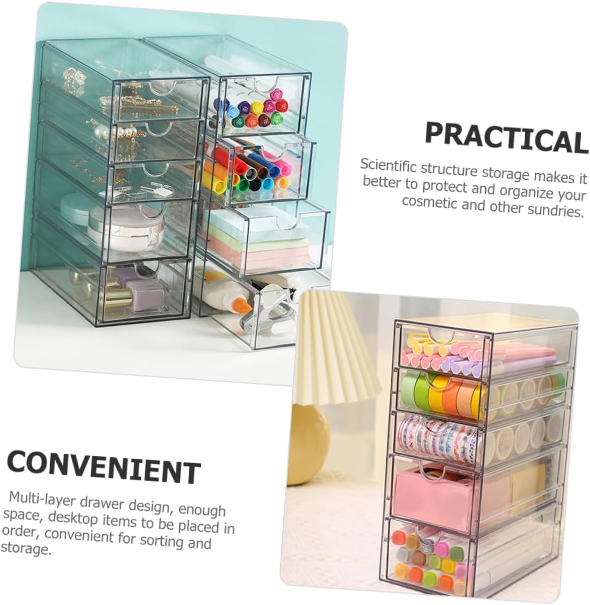 Package Include 1 x drawer organizer Characteristics -Material:PET desktop drawer -Size:25.00X17.50X10.40cm/9.82X6.88X4.09in storage bins with drawers -Product Info:Multi-layer storage box -Color:Transparent stackable storage bins - Lightweight and practical, easy to store, efficient and useful, it will be your perfect storage tool small storage drawers. - With drawer design makes it easier for you to find the cosmetic or items you want storage organizer. - Suitable for storing your makeup tools, cosmetics or small sundries perfectly and orderly storage containers with drawers. - This 5-layer desktop storage box is designed with convenient transparent drawers for easy access to your makeup, glasses, jewelry, stationery, and other small items. storage bins - Sturdy structure, not easy to break. Compact and lightweight, free to move and space-saving plastic storage drawers.Goods Informationdesktop organizer Made with craftsmanship, this is a great desktop organizer that will serve your needs well.stackable storage bins Reasonable design, functional and practical, can well meet your storage needs and bring you more convenience.plastic drawers This is a drawer style storage box made of lightweight and material