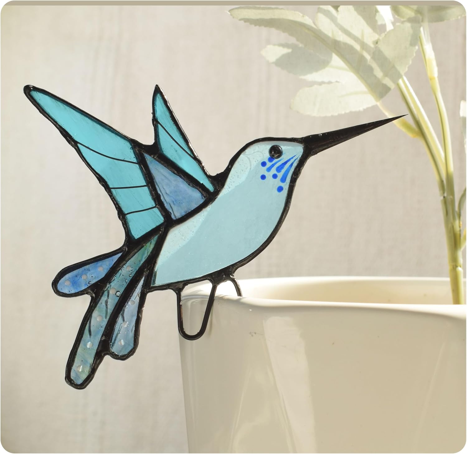 Celebrate the beauty of nature with our handcrafted stained glass hummingbird suncatcher, an ideal gift for individuals who appreciate vibrant, nature-inspired décor. This elegant decorative piece enhances both indoor and outdoor spaces, making it well suited for display in windows, gardens, planters, or sunrooms. Designed to capture and refract natural light, it casts a warm and radiant glow throughout its surroundings. Whether intended for Father’s Day, a birthday celebration, or as a gesture to uplift someone’s spirits, this suncatcher serves as a meaningful and enduring gift that brings sophistication to any any space.