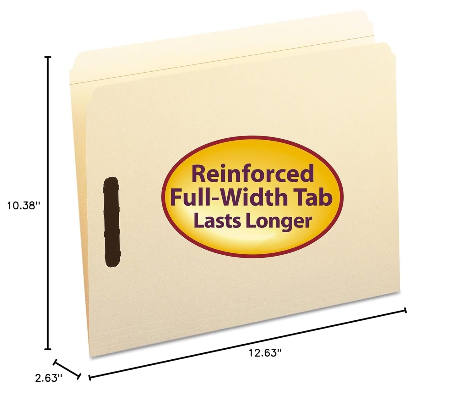 Keep papers secure and in order, even when folders are handled by lots of people and transported out of the office. Subdivide documents with ease. Create two separate filing surfaces with fasteners on the front and back panels. Two 2" prong K style fasteners per folder positions no. 1 and no. 3. Great for everyday use! Made of 11 point sturdy paper stock. Each folder is scored for 3/4" expansion. Includes 50 letter size folders (11-3/4" 11-5/8" W x 9-1/2" H). Each folder has a reinforced straight-cut tab. Proudly made in the USA. Contains 10% recycled content, 10% post-consumer material and is SFI Sourcing Certified.