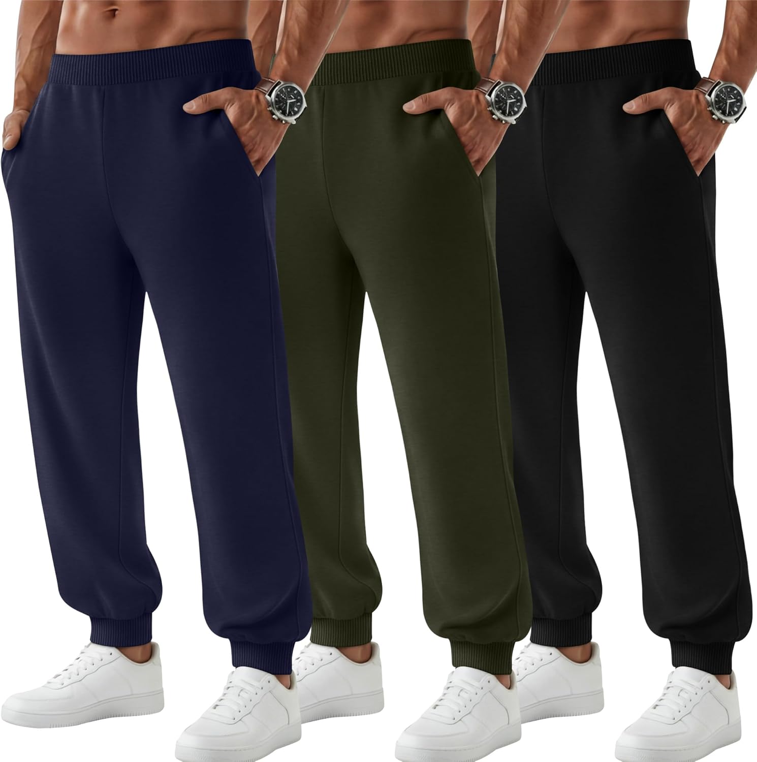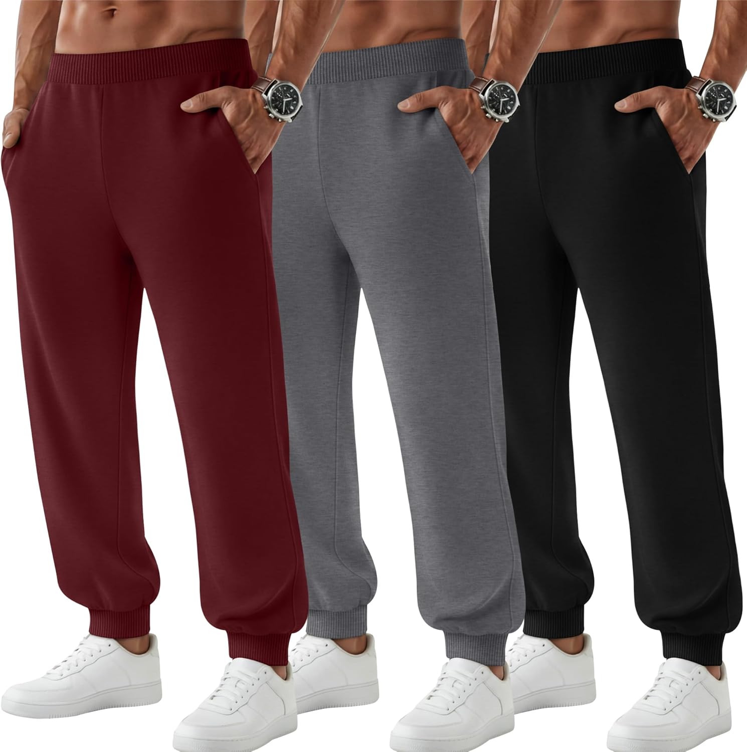 Features: Our 3 pack of mens sweatpants offers thoughtful present choice as a birthday, holiday surprise to your male friends or husband. Care for these sweatpants for men is easy. Machine washable or hand wash with cold water, no shrinkage not easy to deform Specifications: Material: 85% Polyester, 10% Cotton, 5% Spandex Package includes: 3 Pack men's sweatpants Notes: Manual measurement, please allow slight errors on size. The color may exist a slight difference due to different screen displays