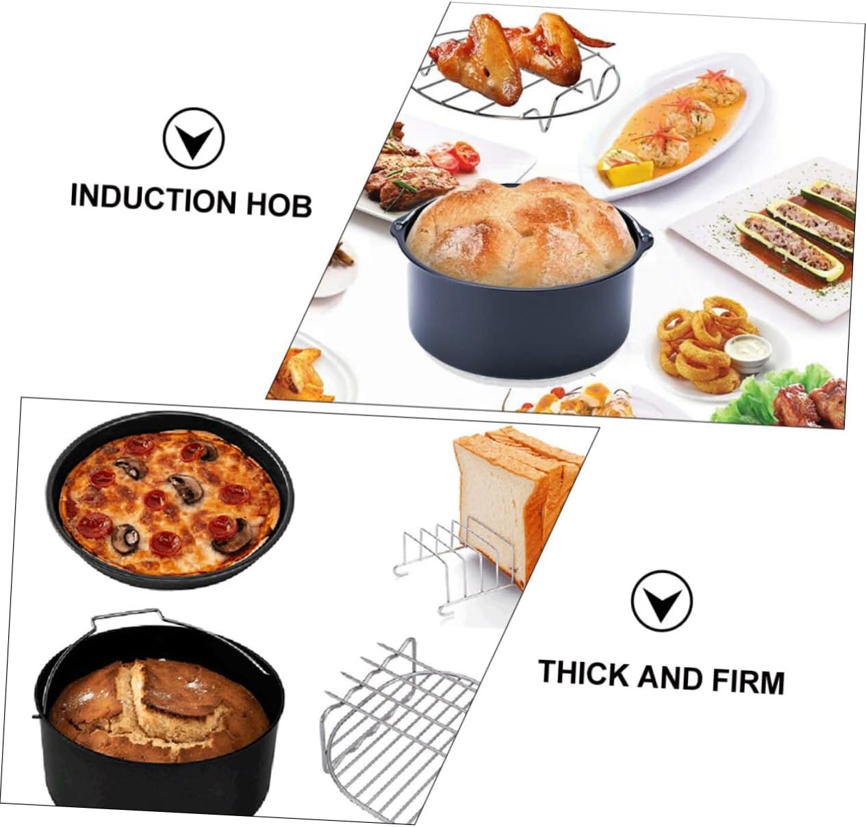 Package Include 1 x cake barrel 1 x pizza pan 1 x honeycomb mat 1 x grill 1 x steaming rack 1 x toast rack Features -Size: Toast Rack: 15.5X8.5cm/6.10X3.34inch Frying Pot Kit. -Color:Assorted Color Frying Tools -Size: Steaming Rack: 17.50X17.50X4.50cm/6.88X6.88X1.77inch Air Frying Pot Kit. -Size: Grill: 17.50X17.00X7.00cm/6.88X6.69X2.75inch Baking Supplies. -Size: Honeycomb Mat: 17.50X17.50cm/6.88X6.88inch Air Fryer Accessories. -Size: Pizza Pan: 18.00X18.00X3.00cm/7.08X7.08X1.18inch. -Size: Cake Barrel : 19.00X17.50X7.50cm/7.47X6.88X2.95inch. -Material: Stainless steel. - The bottom of the honeycomb mat is heated more evenly, which makes the cake taste better and look more beautiful Kitchen Supplies. - Quick cleaning, clean with one wipe. Smooth non-stick pan, thick and firm Baking Tools - 6pcs air fryer accessories to meet your different food needs Household Frying Pan. - for all types of fire resources like gas stove, induction hob, electric stove Kitchen Air Fryer Supplies. - Made of materials, and .Goods DescriptionBaking Supplies Made of , it is and retains heat well.Frying Tools It has a great heat conductor, so the pot quickly heats cooks food .Kitchen Supplies This fryer is suitable for gas stove, induction hob, and electric stove.Air Frying Pot Kit This product is a small household kitchen utensil for food frying